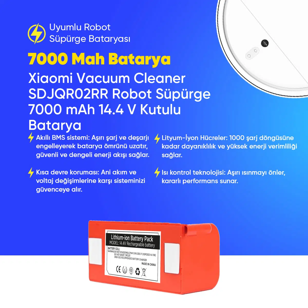 | Etiketler | Xiaomi Vacuum Cleaner SDJQR02RR Robot Süpürge 7000 mAh 14.4 V Kutulu Batarya – Orjinal Uyumlu Uzun Ömürlü, Yüksek Performans Pil |