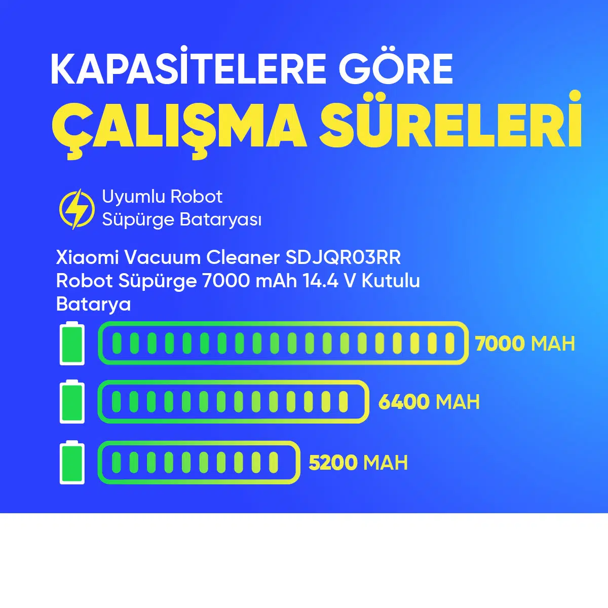 | Etiketler | Xiaomi Vacuum Cleaner SDJQR03RR Robot Süpürge 7000 mAh 14.4 V Kutulu Batarya – Orjinal Uyumlu Uzun Ömürlü, Yüksek Performans Pil |