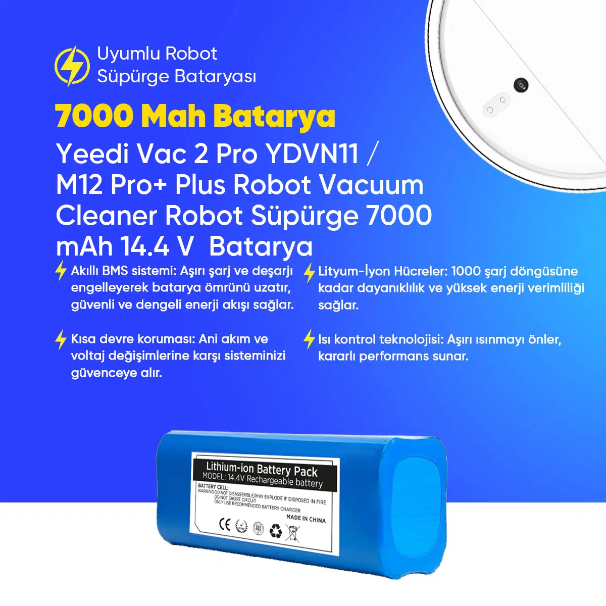 | Etiketler | Yeedi Vac 2 Pro YDVN11 / M12 Pro+ Plus Robot Vacuum Cleaner Robot Süpürge 7000 mAh 14.4 V Batarya – Orjinal Uyumlu Uzun Ömürlü, Yüksek Performans Pil |